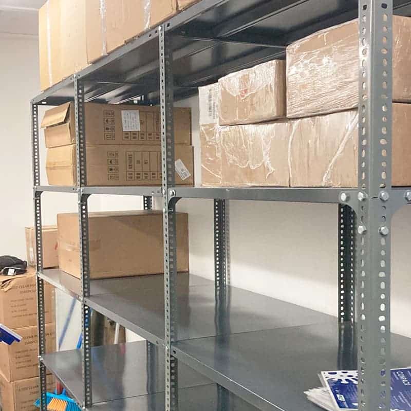 Estante MECANO que se arma a través de Pilares y Bandejas de diferentes medidas.